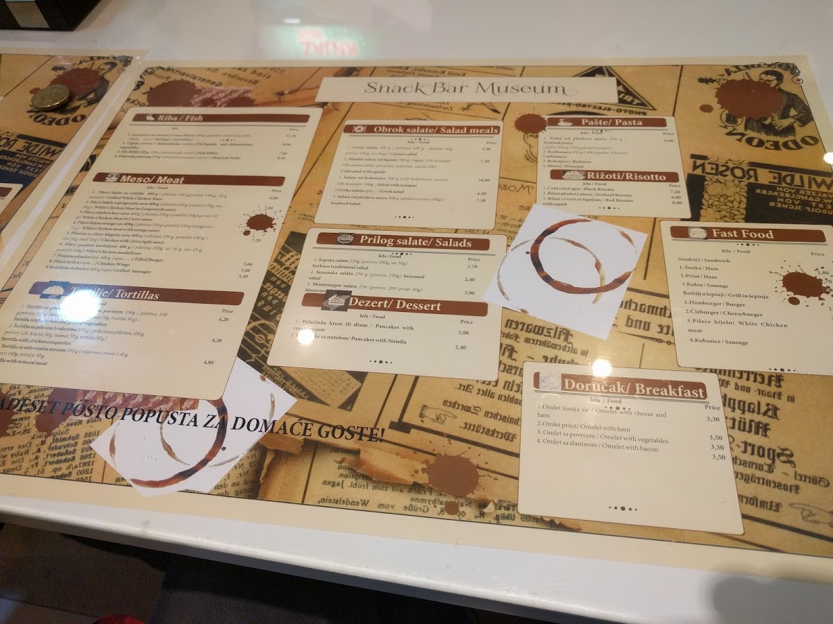Snack Bar Museum Menu